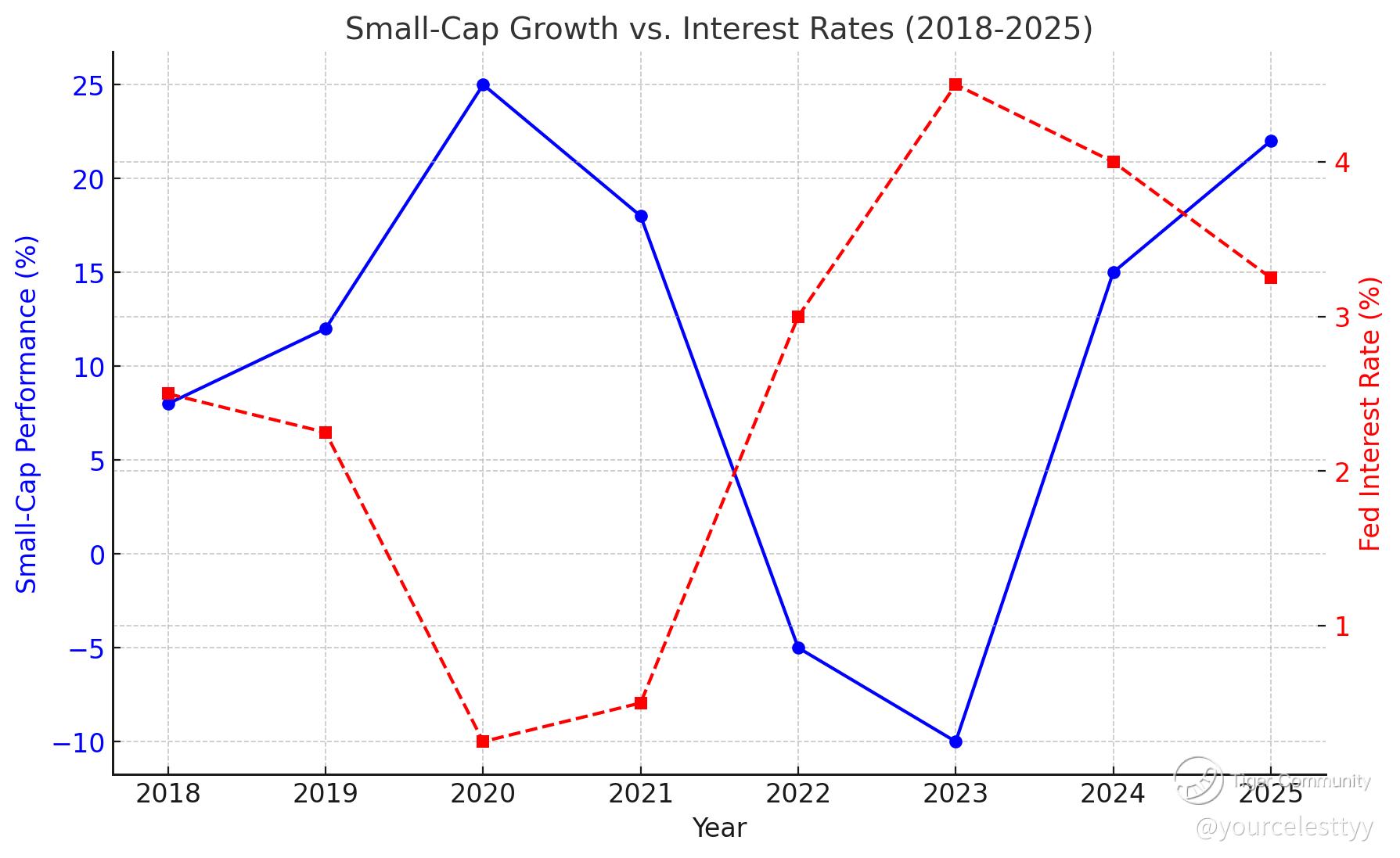 4. Small-Cap Stock Growth vs. Interest Rate Changes (2018-2025 Projection)