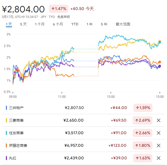 3. 資產增值:五大商社股價平均漲幅達120%,賬面浮盈超百億美元
