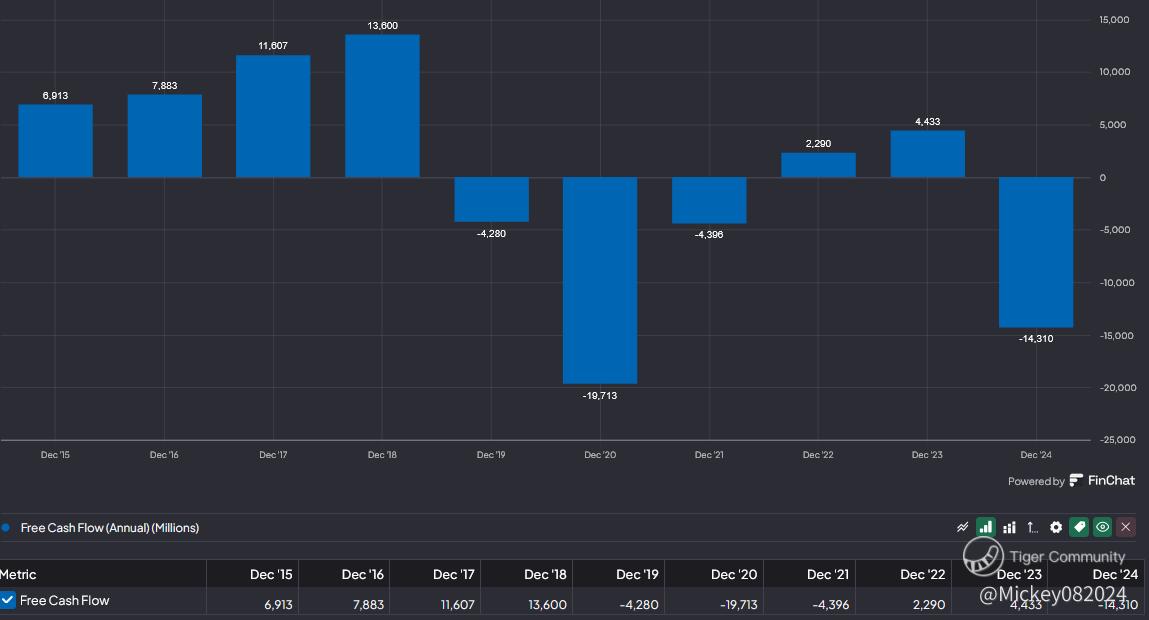 Cash Flow and Operational Challenges: Despite recent improvements, Boeing's cash flow has been deeply negative in the past, reflecting challenges in manufacturing, regulatory hurdles, and past performance issues. The company has yet to fully resolve these and is working to regain stability.