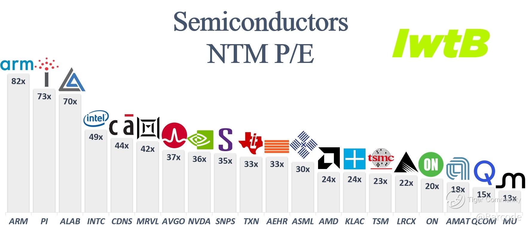 ARM's commanding NTM P/E ratio of 82x, as per IwtB, eclipses peers like PI (73x) and Intel (49x), reflecting a market narrative that positions ARM as the vanguard of semiconductor innovation, particularly in mobile and AI-driven paradigms.