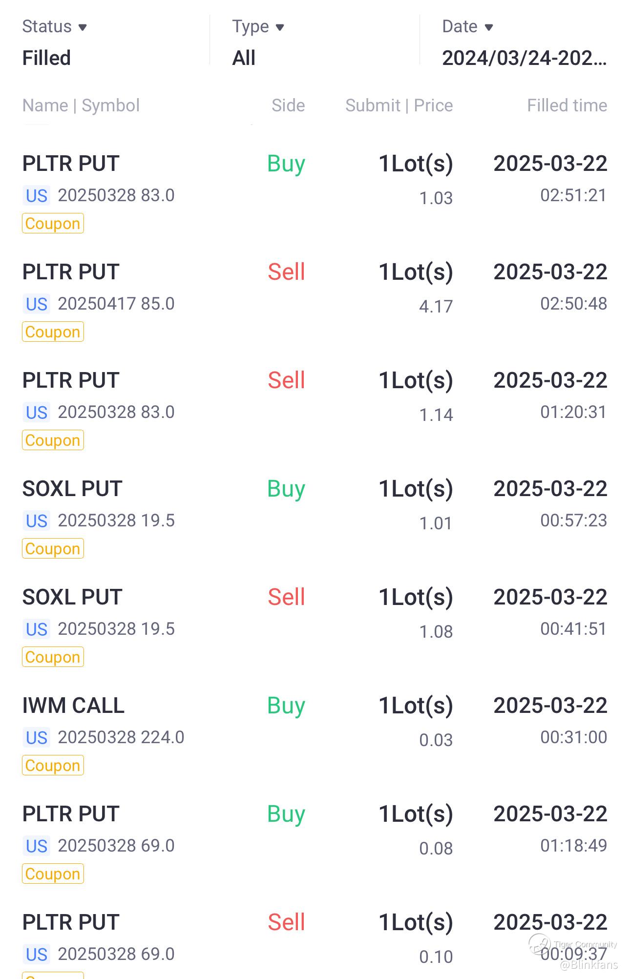 Similarly, I executed the same strategy on SOXL. I sold a SOXL put at a strike price of $19.5 for $1.08 and later bought it back at $1.01, pocketing a small but steady profit. While these amounts may seem small in isolation, executing these trades consistently adds up over time.$IWM 20250328 224.0 CALL$