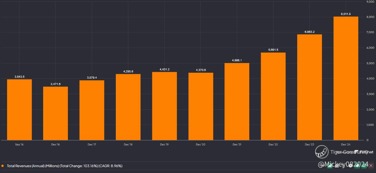 Let’s start with Vertiv's quarterly revenue growth. The company saw a solid 26% revenue growth in the most recent quarter. While their revenue has fluctuated, the management has forecasted revenue for 2025 to be approximately $9.2 billion, with adjusted earnings per share (EPS) around $3.55. This would represent a strong improvement from 2024, where revenue was $8 billion and adjusted EPS was $2.85. The management team is projecting over 10% revenue growth and 10%+ EPS growth in 2025, with potential for 20-30% EPS growth. However, investors are more concerned about the longer term—specifically 2026 and beyond.