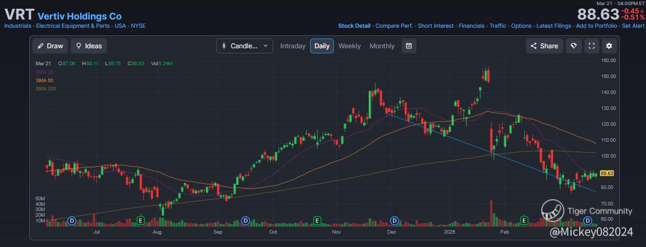 Overall, while there is some concern about short-term growth due to the reduced spending from major clients, the long-term market sentiment remains positive, especially given the growing importance of AI and the need for data center solutions. Vertiv’s prospects still look strong, though caution is warranted as it navigates this period of uncertainty in the tech sector.
