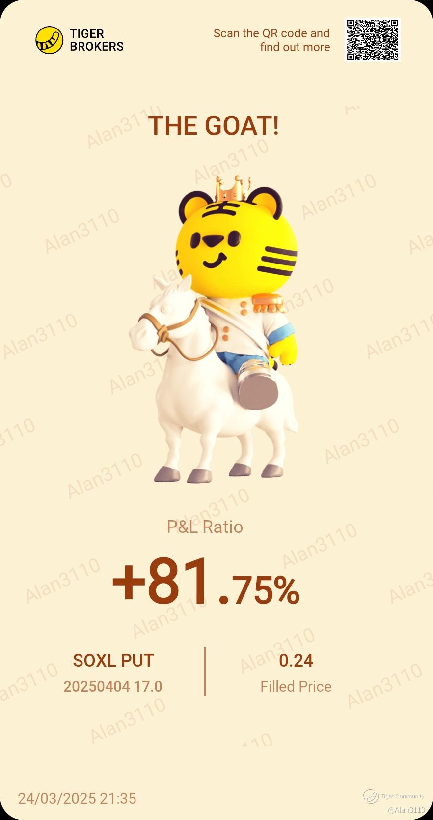 $SOXL 20250404 17.0 PUT$ Closed to take profits off table. Been a good ride. Thanks.