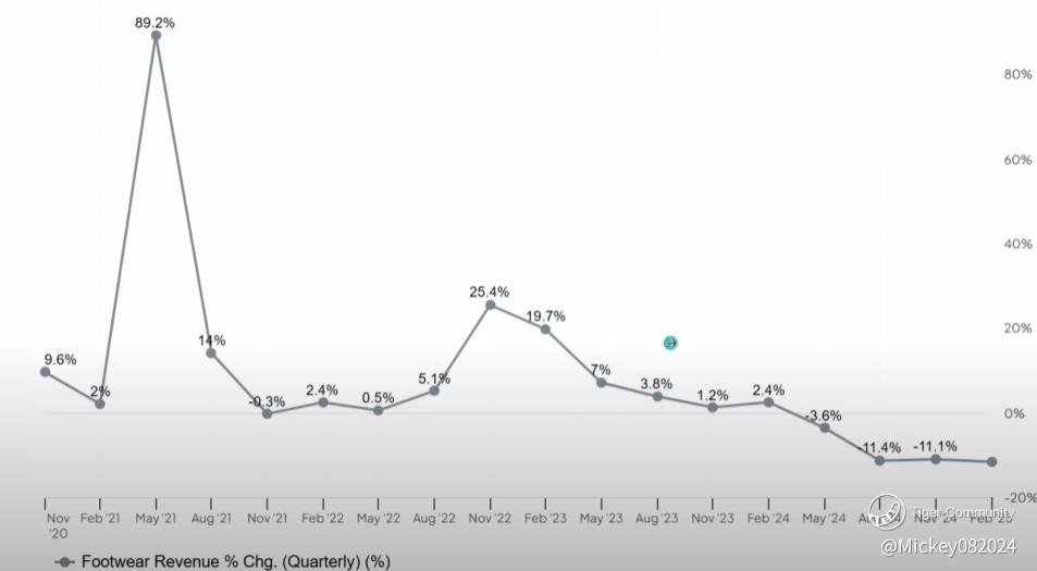 Footwear has been struggling for four consecutive quarters, showing clear signs of slowing demand. The key question now is how much further it can decline. If the stock sees a small rebound tomorrow, it could indicate that the market believes this is the bottom, but that remains to be seen in the upcoming quarters.
