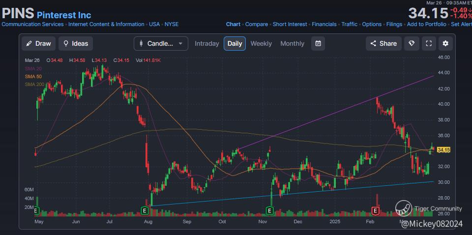 Increased Competition from Major Players The competitive landscape in the social media and digital advertising sectors is one of the key factors contributing to negative sentiment around Pinterest. Major players like Meta (Facebook and Instagram), Google, Snap, and TikTok continue to dominate the space with established user bases and more comprehensive advertising solutions. These competitors are continuously innovating, making it challenging for Pinterest to stand out. If Pinterest fails to maintain or grow its market share amidst intense competition, investors could become wary about its future growth prospects.