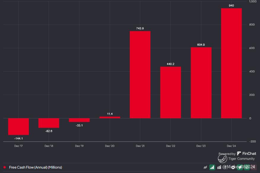 Looking at Pinterest’s cash flow and overall profitability, we see a remarkable trend of improvement. The company's cash flow from operations to sales ratio currently stands at 26.5%, a significant increase from a negative 10% in 2019. This shows how effectively Pinterest has scaled its operations and turned revenue growth into actual profits.