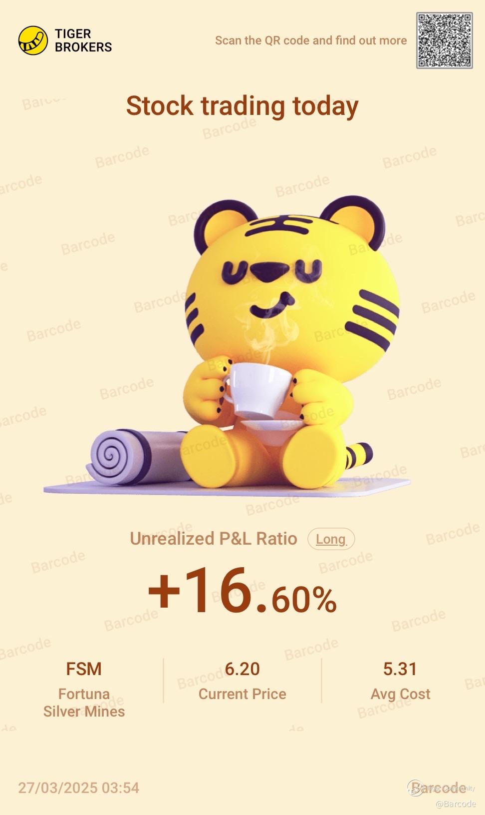 $Fortuna Silver Mines(FSM)$ Updated position for community share P&L 10 Tiger coins. Have a great day Tigers in the sea of Crimson red!