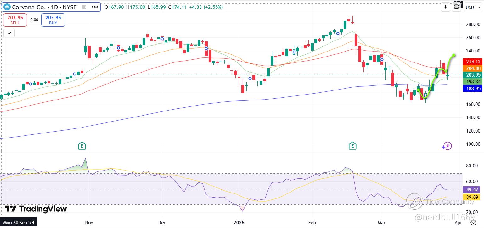 As we can see how CVNA have managed to stay near the 50-day despite the market weakness due to the recent selloff on the concern of tariffs.