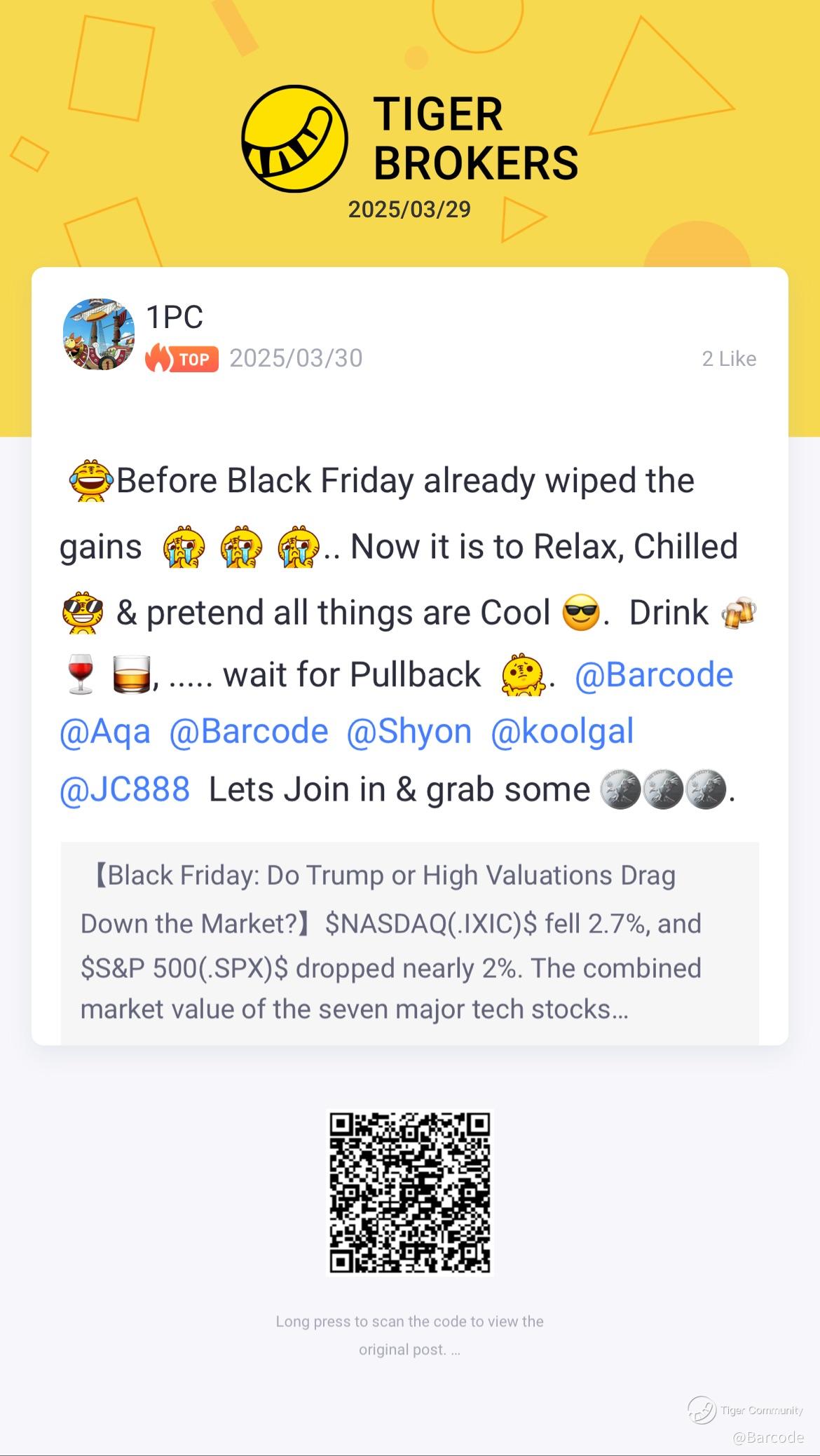 $BLACK CAT SYNDICATE LTD(BC8.AU)$ $Apple(AAPL)$ $Alphabet(GOOG)$ $Amazon.com(AMZN)$ $Advanced Micro Devices(AMD)$ 🪖🪖🪖 A tip of the hat to 1PC for 🏷️ to this event. The market, ever the impish playwright, unfurled a Black Friday teaser, slashed prices, portfolios shedding weight like a modernist purge. If Monday dares darken further, we’ll need sonar to navigate the debris of our charts 📉🌑