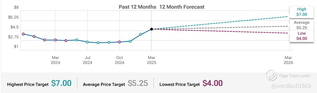Based on 3 Wall Street analysts offering 12 month price targets for BlackBerry in the last 3 months. The average price target is $5.25 with a high forecast of $7.00 and a low forecast of $4.00. The average price target represents a 39.26% change from the last price of $3.77.