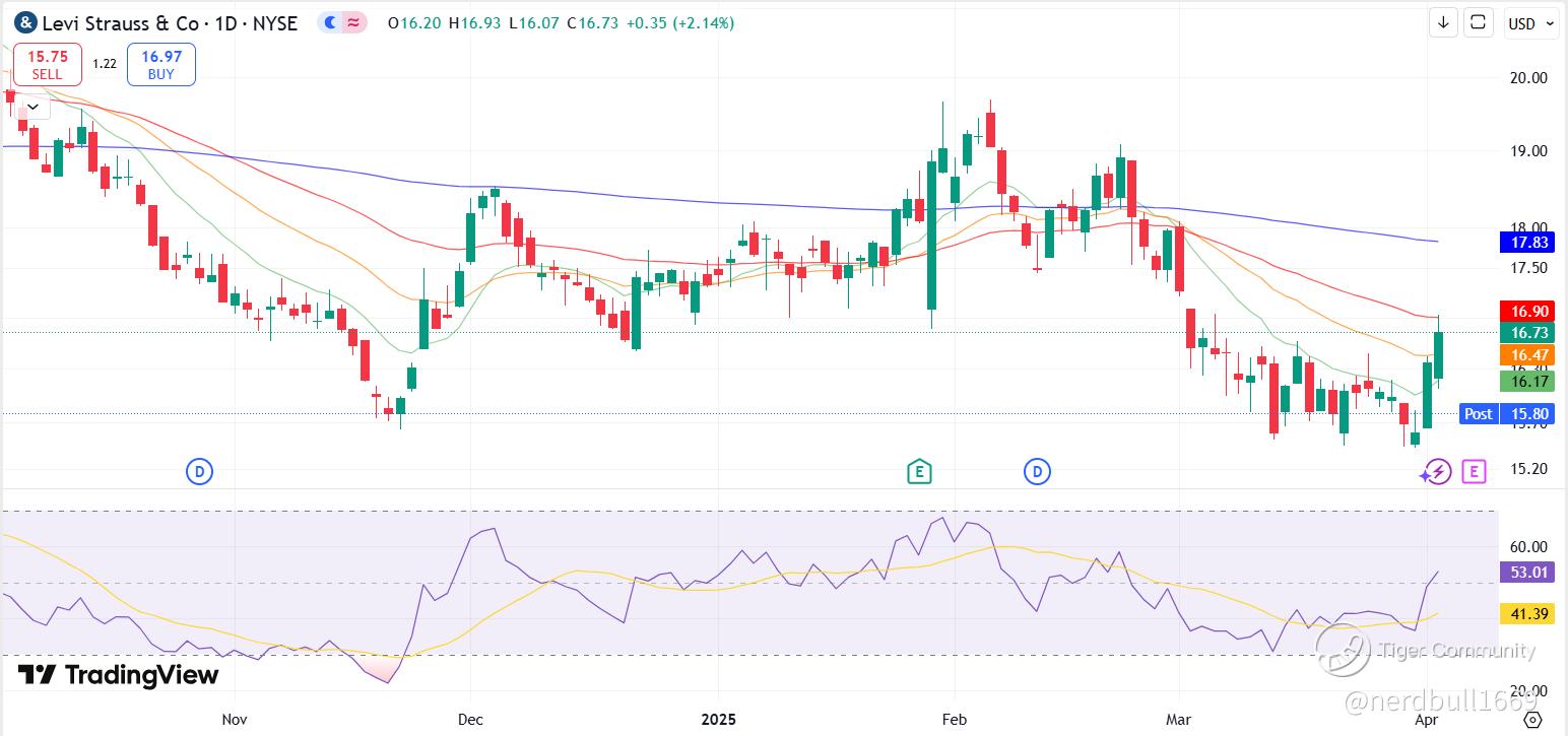 From the technical, we are seeing a good momentum coming from RSI rising towards the overbought region, and the stock have responded well by moving near 50-day MA, but now with the tariffs announced on Europe and some Asia countries where LEVI has its production facilities, this could affect the share price.