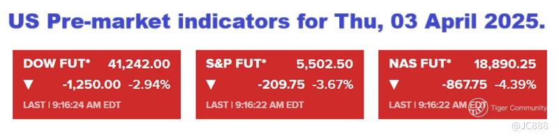 US market is poised to have a “crash” opening on Thu, 03 Apr 2025 morning.