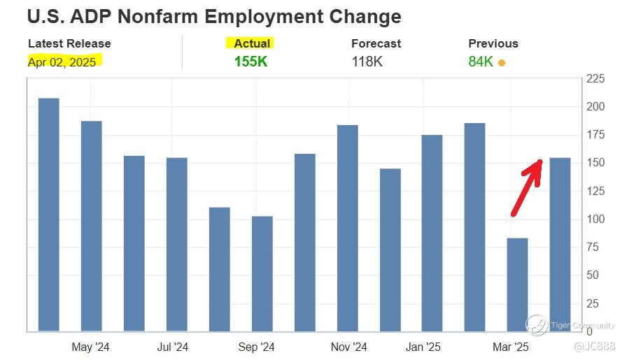 The March 2025 report, showed private sector employment growth of 155,000 jobs, exceeding market expectations of 118,000.