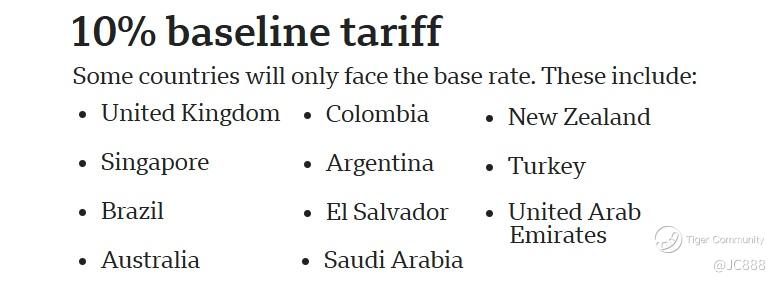 Baseline Rate: 10% tariff on all imports to US, affecting over 180 countries/territories.