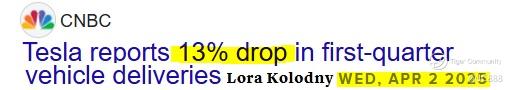 The hit should come with Tesla’s release of its Q1 2025 delivery data. (see below)