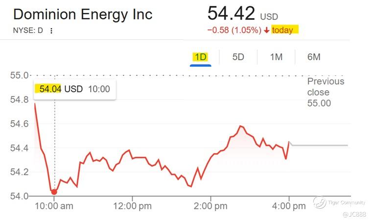 The 2nd energy stock that fell the most was Dominion Energy Inc, by -1.05%.