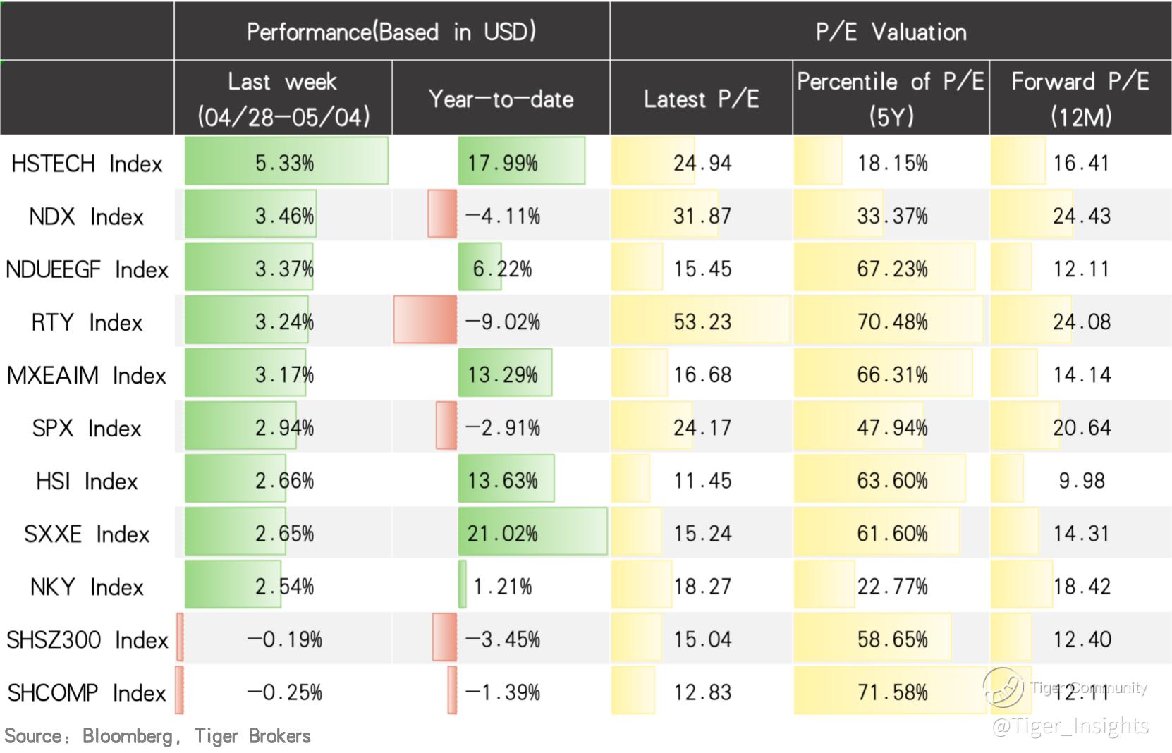 Last week, overall market sentiment continued to improve, with Greater China's Hang Seng Tech Index surging over 5%, leading all major global equity assets. U.S. stocks also extended their rebound, achieving an impressive nine-day winning streak. The S&P 500, Nasdaq 100, and Russell 2000 all posted weekly gains of around 3%. In contrast, China's A-shares remained relatively independent, neither following the global sell-offs nor the rallies.