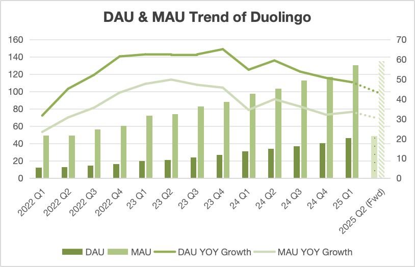 With its proven strengths in AI and viral marketing, Duolingo continues to find new growth vectors — such as its chess module — even in a well-known product landscape. The Q1 campaign further validated the brand’s popularity and helped drive increases in DAU and MAU.