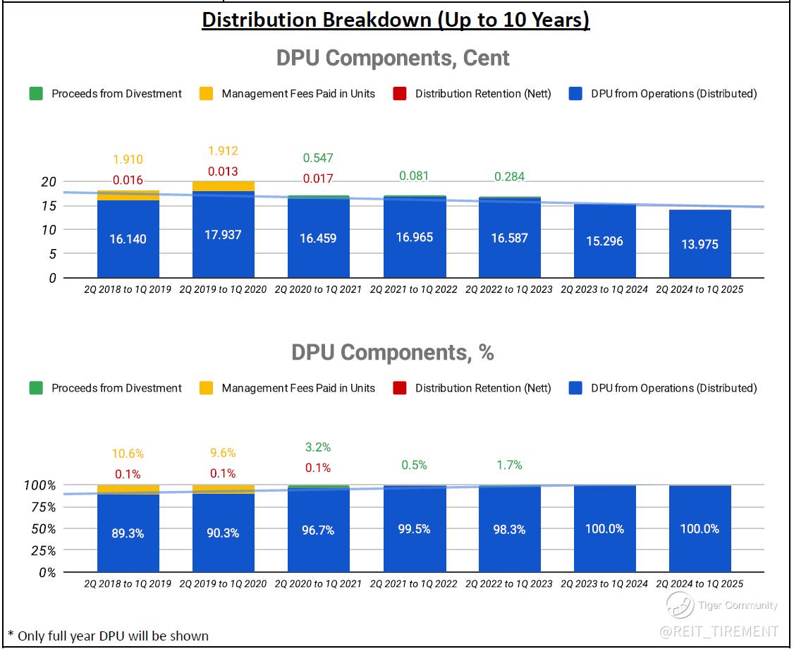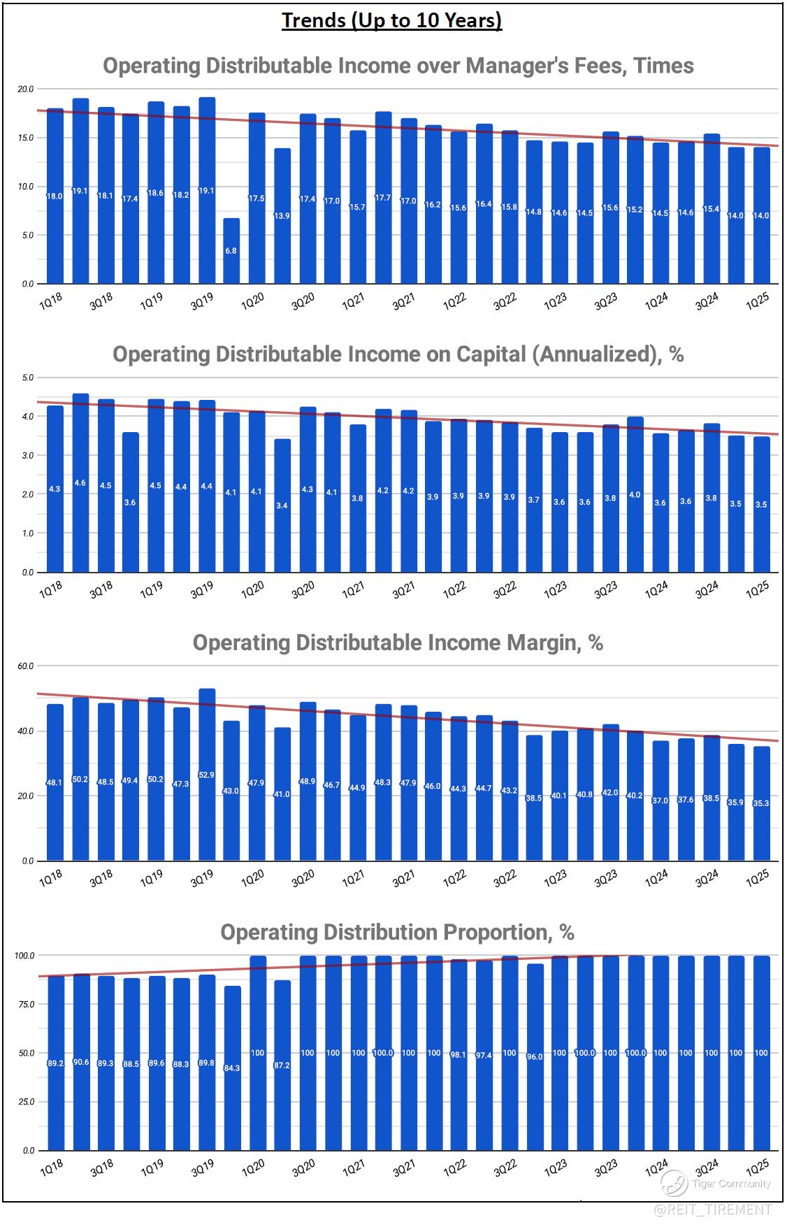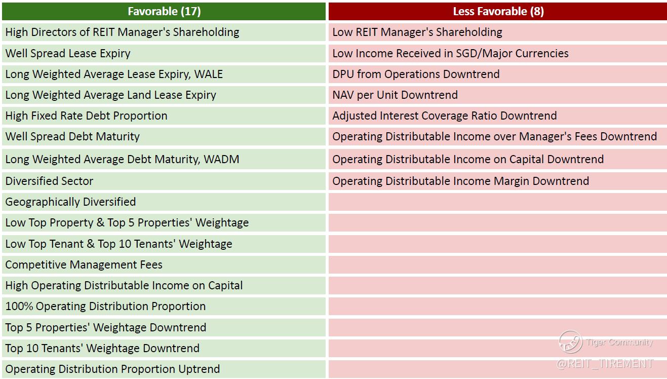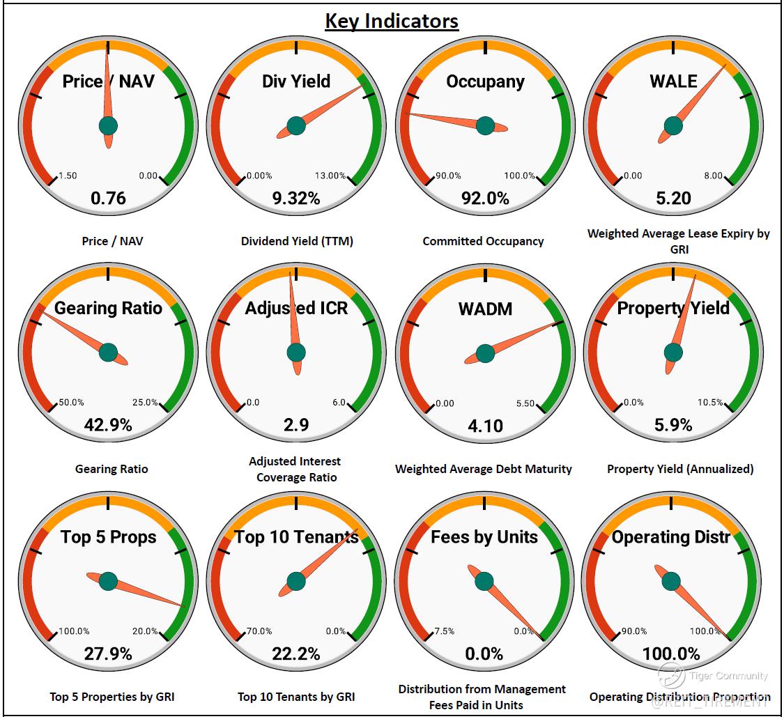Downtrend: DPU from Operations, NAV per Unit, Adjusted Interest Coverage Ratio, Top 5 Properties' Weightage, Top 10 Tenants' Weightage, Operating Distributable Income over Manager's Fees, Operating Distributable Income on Capital, Operating Distributable Income Margin