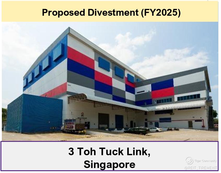 In December 2024, AAREIT announced the proposed divestment of 3 Toh Tuck Link at a 32.5% premium to the latest valuation.