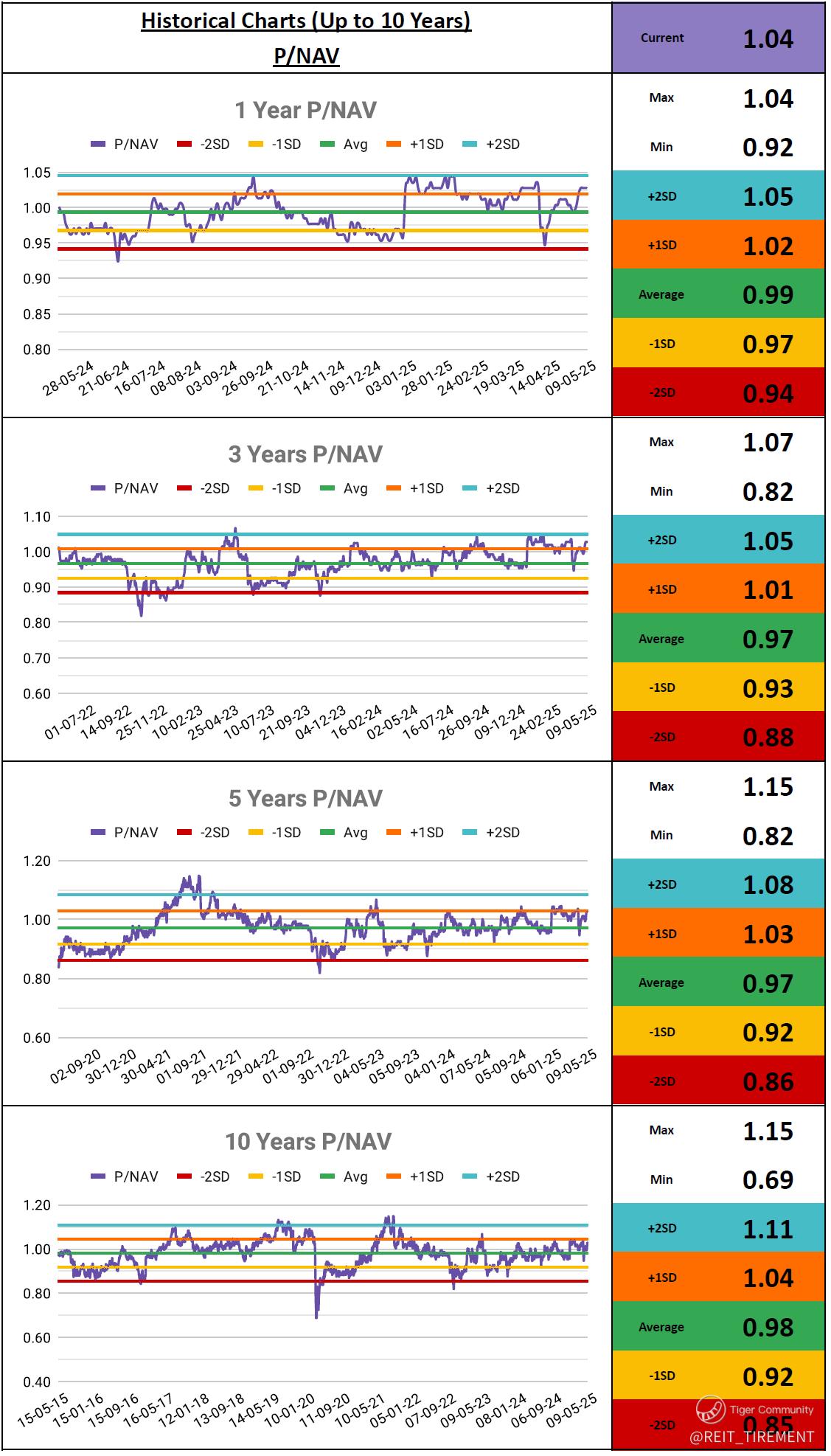 P/NAV: Above +1SD for 1y, 3y & 5y; Average for 10y
