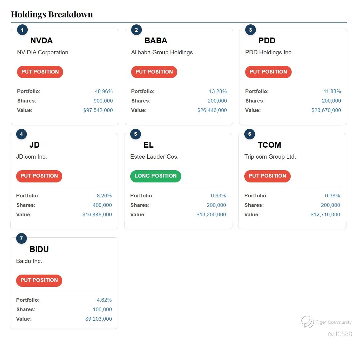 The fund acquired bearish “Put” options on major Chinese companies, including $Alibaba(BABA)$ and $Baidu(BIDU)$.