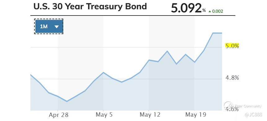 Meanwhile the 30-year bond yield rose 11.5 basis points to 5.0817% from 4.967% late on Tuesday. (see above)