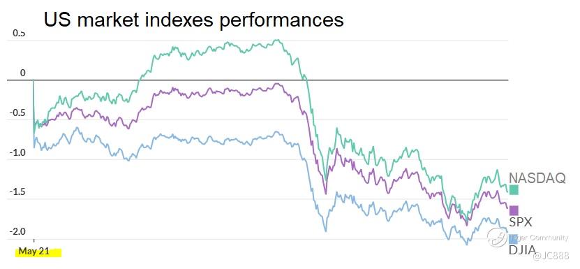 On Wed, 21 May 2025, US major stock indexes fell big time, as investors worried about a deteriorating US fiscal outlook.