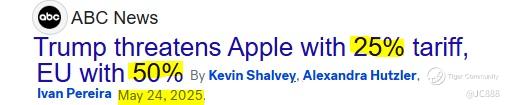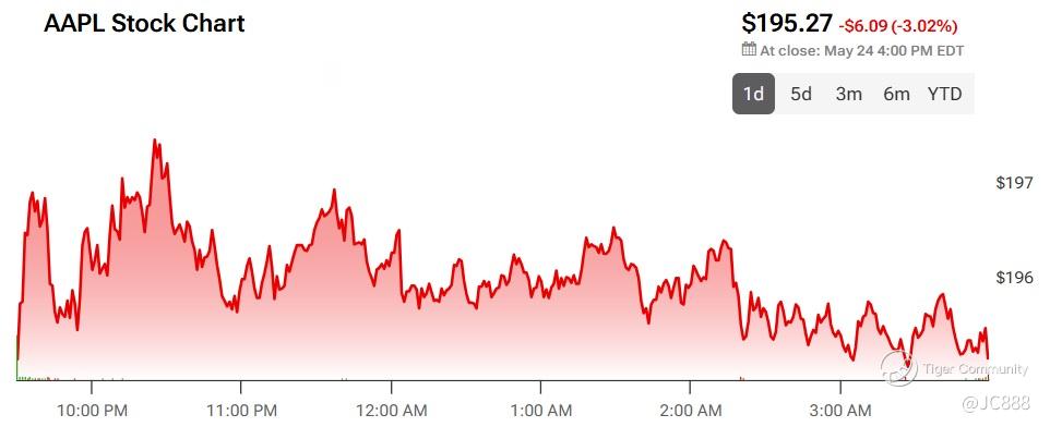 On Fri, 23 May 2025, $Apple(AAPL)$ fell by -3.02% to end the week at $195.27 per share. (see below)