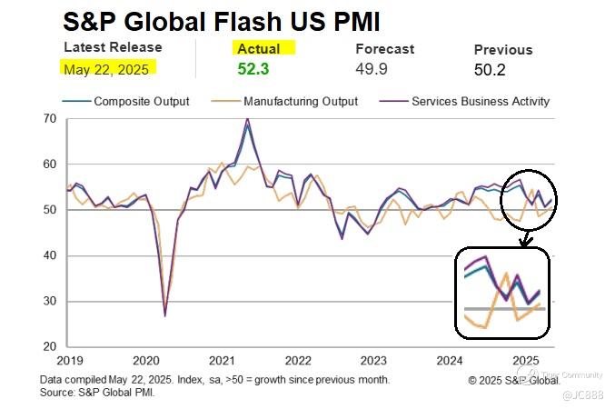 For May 2025, S&P Global Flash US Manufacturing PMI rose to 52.3, from 50.2 in April 2025.