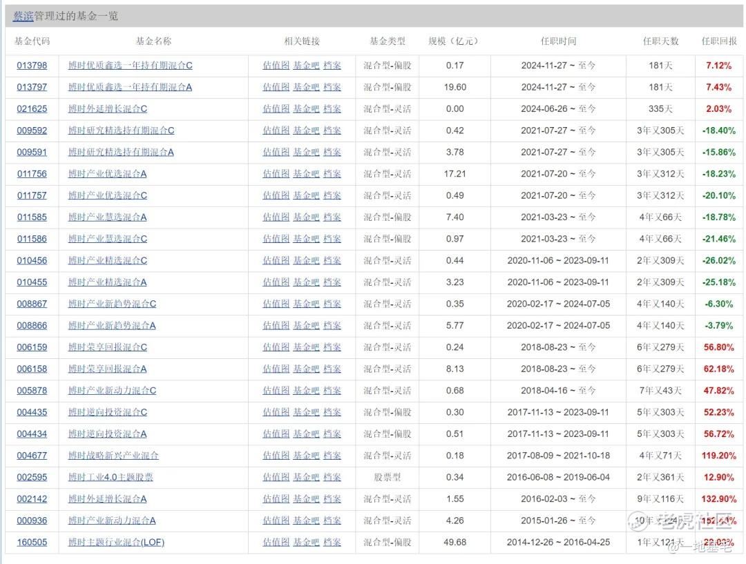 蔡濱曾是博時基金重點培養的基金經理,其代表產品博時產業新動力和博時外延增長主題在任期內業績均能進入同類前 20%。