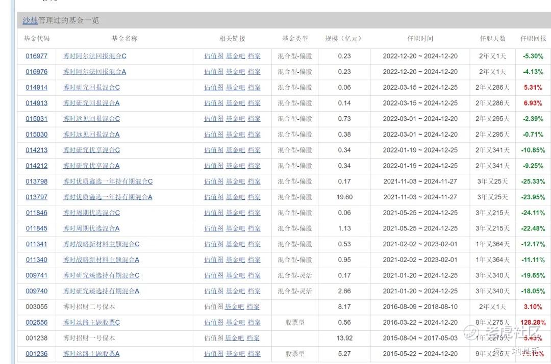 此外,在近三年間博時基金還有多位基金經理離職,如沙煒和葛晨等,他們管理的基金業績普遍不佳。
