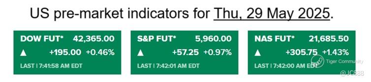 On Thu, 29 May 2025, US pre-market indicators are showing strong signs of rally. (see below)
