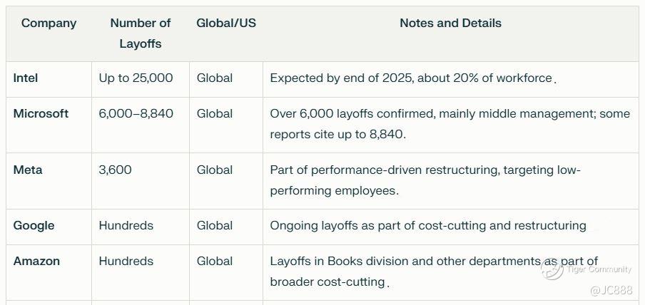 Below is a summary of what have been mentioned above except for $Meta Platforms, Inc.(META)$ whose layoff exercise started earlier in Jan & Feb 2025.