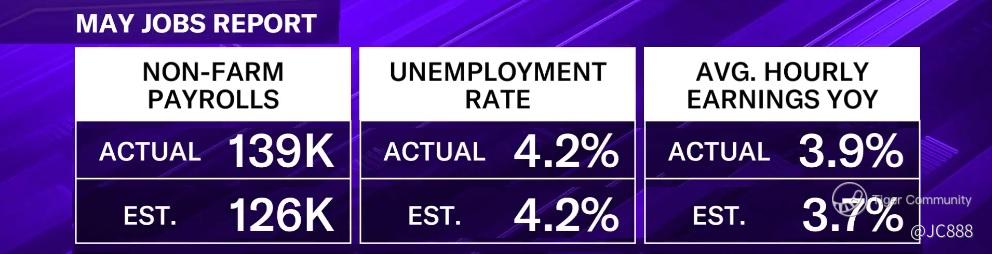 US economy added 139,000 nonfarm payrolls in May, more than the 126,000 estimates expected by economists. (see above)