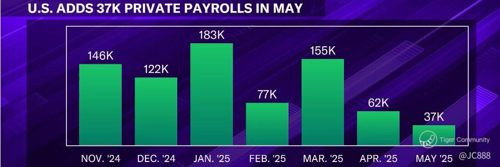 The May 2025 private sector jobs report cast a shadow on the health of the US economy. Its weakness could be a signal to US central bank as they prepare to convene on June 17-18.