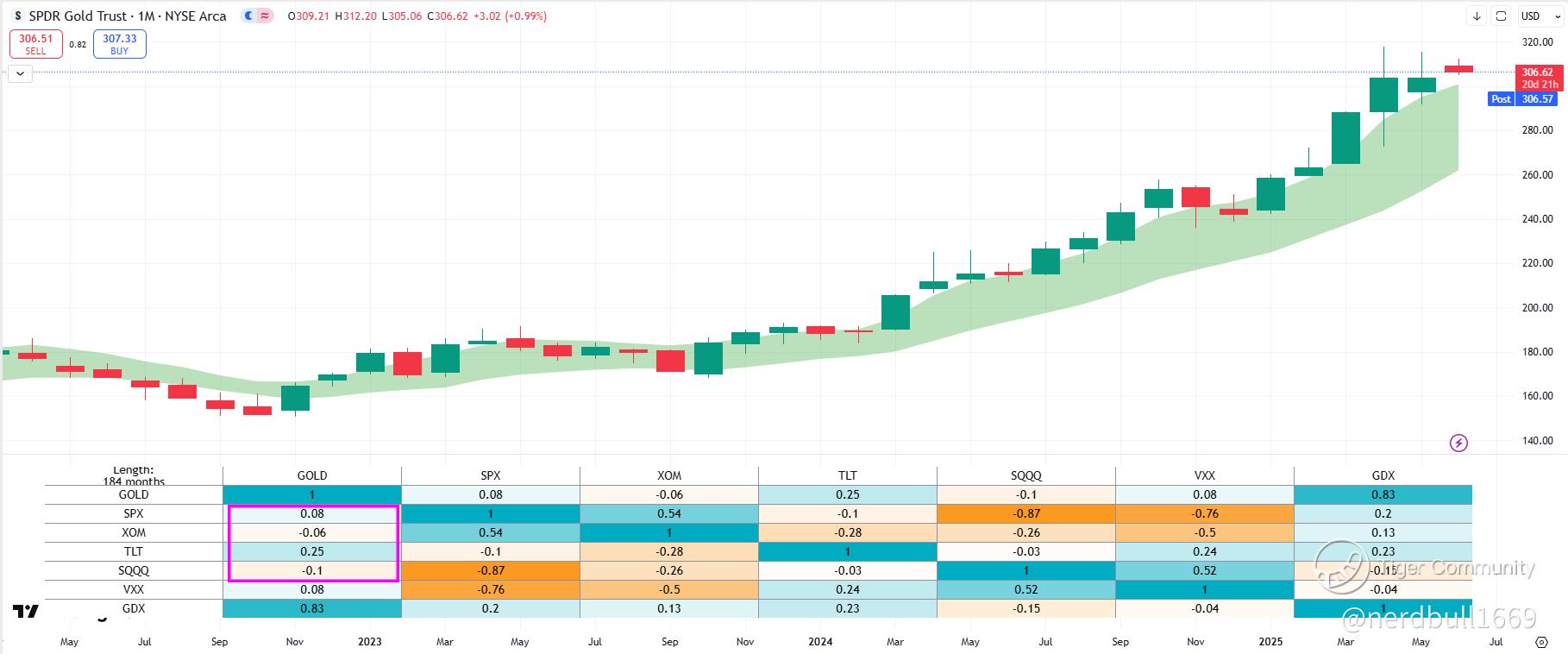 If we looked at the correlation for Gold with $S&P 500(.SPX)$ and the bonds, we will notice that the value is low, hence this indicate that Gold can be a good shock absorber if we were to face with longer period of market uncertainity.