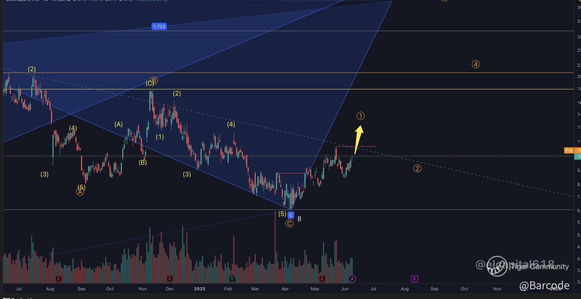 The RSI(6) has climbed to 64.59, with higher lows forming across all momentum indicators. MACD continues to build bullish histogram momentum and is on the verge of flipping positive. Structurally, the chart suggests this is wave 1 in a broader Elliott impulsive pattern. The next target? A break of $11.35 to confirm bullish continuation.