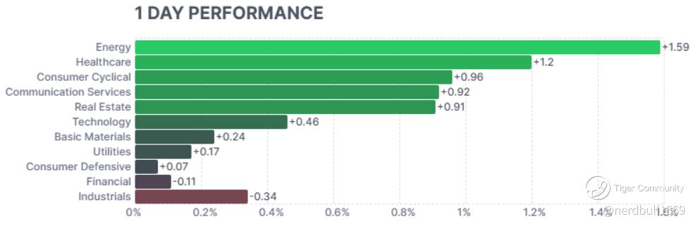 Technology rose by 0.5%, with chipmakers boosting the $Invesco PHLX Semiconductor ETF(SOXQ)$ by 2.1%. $Intel(INTC)$ surged by 8.0%, driven by optimism around its new technology.