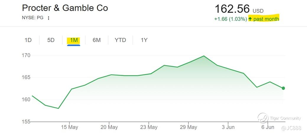 Based on past month performance, P&G has gained +1.02% with stock price at $162.56.
