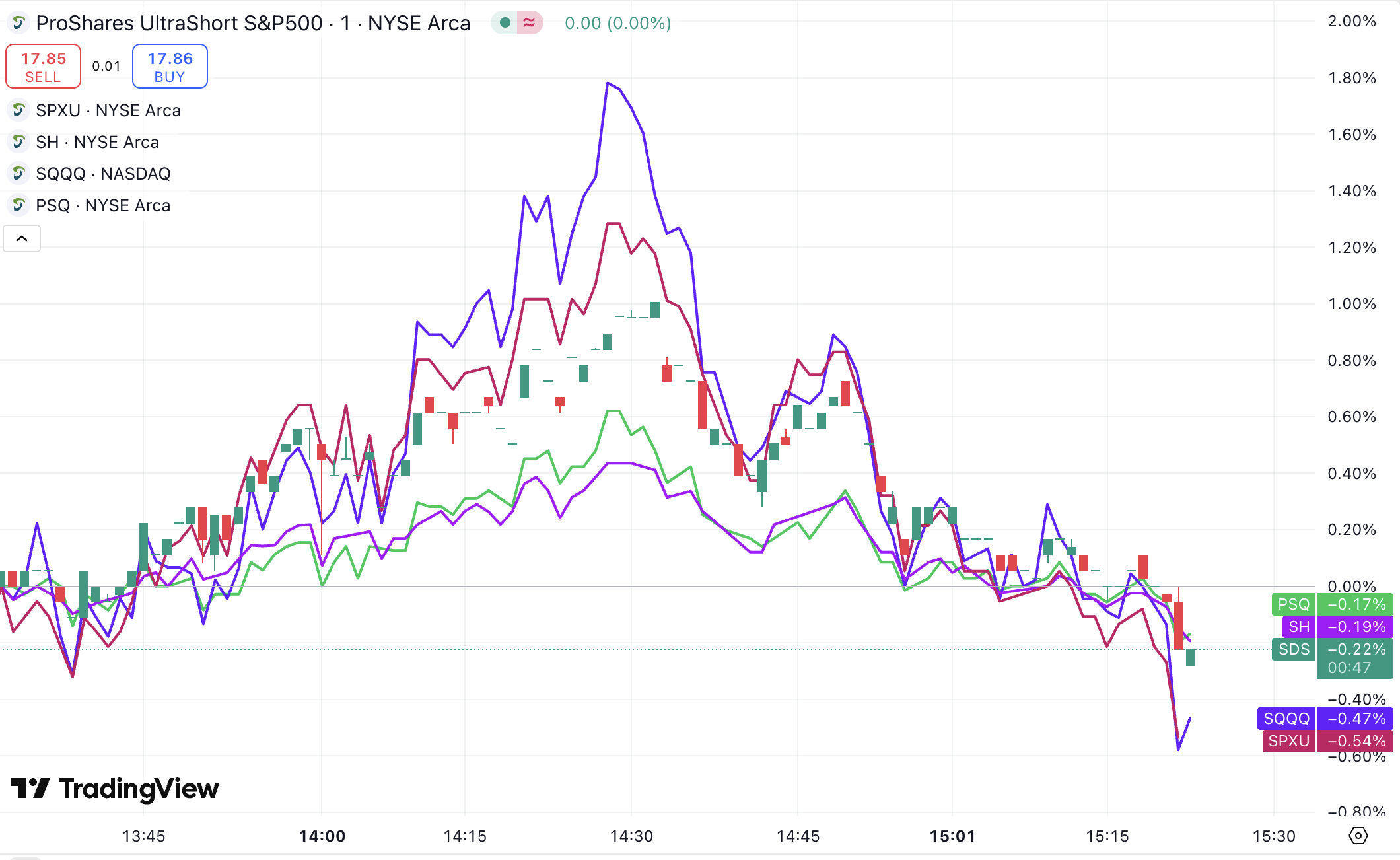 $ProShares UltraShort S&P500(SDS)$ $ProShares UltraPro Short S&P 500(SPXU)$ $ProShares Short S&P 500(SH)$ $ProShares UltraPro Short QQQ(SQQQ)$ $ProShares Short QQQ(PSQ)$