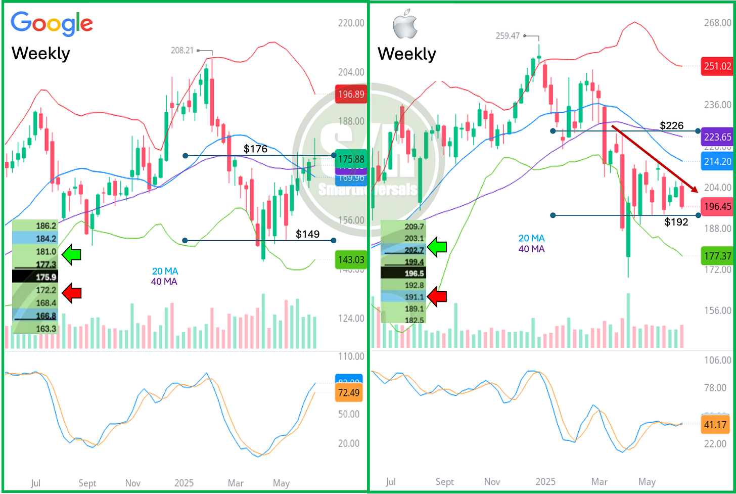 That said, the bearish setup for GOOG is validated as long as the price stays below $177 next week, which is the central level updated, suggesting a descent towards $172. If Alphabet can re-establish itself above the $177.3 central weekly level, the price could target $181 before reversing.