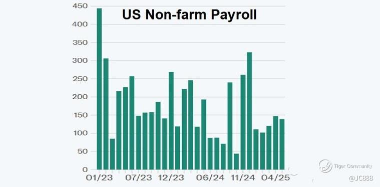 The “positive” surprise from the previous week’s non-farm payroll report (139,000 jobs added in May 2025 and unemployment holding steady at 4.2%) continued to support sentiment early in the week. (see above)