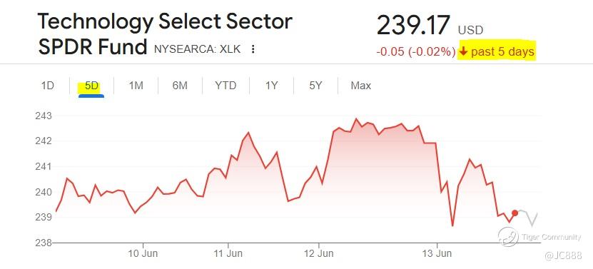 The $Technology Select Sector SPDR Fund(XLK)$ saw notable swings as investors reacted to headlines and shifting sentiment, giving up most of the gains chalked up during the week. (see above)