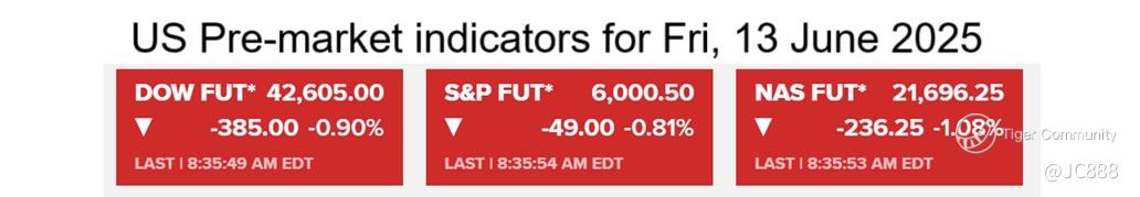 US market is expected to fall on Fri, 13 Jun 2025 following Israel surprised attack of Iran. (see below)