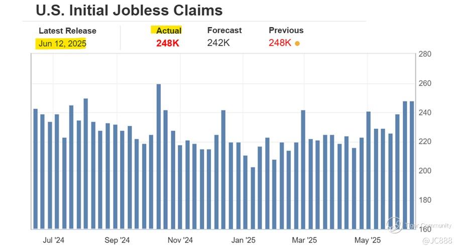 For week ending 07 Jun 2025, initial jobless claims in at 248,000, unchanged from the previous week's revised level. (see above)
