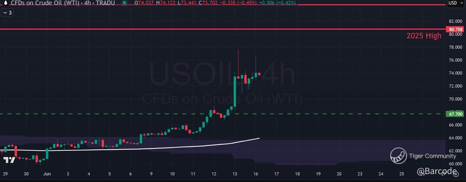 Crude futures are charging toward $80, with $USOIL still below its 2025 high. If a physical supply disruption hits, we’re looking at triple-digit oil and a supercharged energy sector rerate.