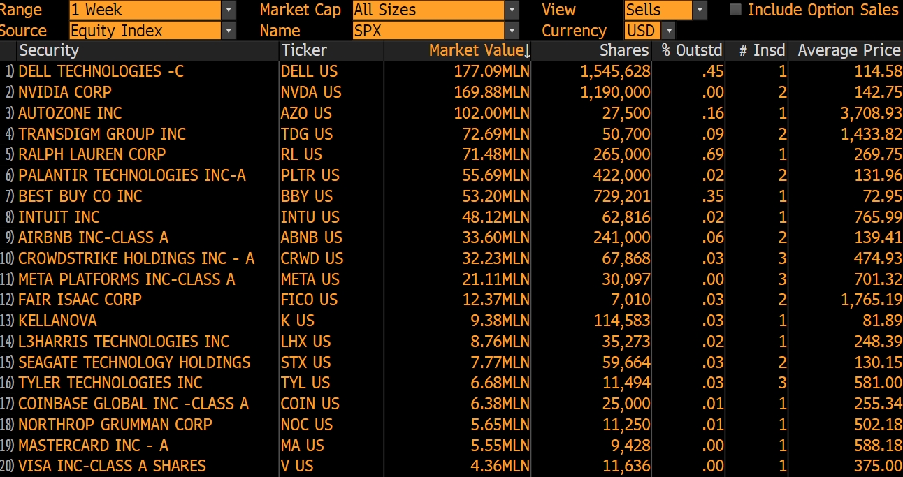 👇🤔Weekly 65 Insider Sells:DELL, NVDA, AZO, PLTR & More