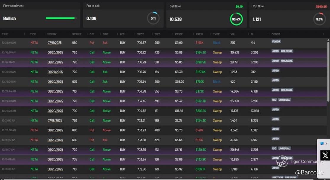 Options flow? 🔥 Institutions piling into $720 weeklies since open. Bullish call flow is a strong signal of confidence.